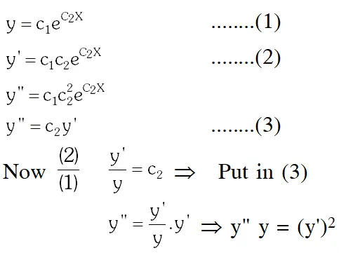 Q. The differential equation which represents the family of curves $y=c_{1} e^{c_{2} x},$ where $c_{1}$ and $c_{2}$ are arbitrary constants, is :-