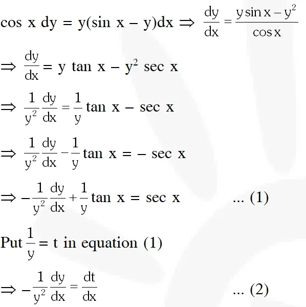 Q. Solution of the differential equation $\cos x$ dy $=y(\sin x-y) d x, 0