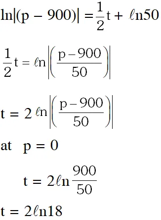 $\ell \mathrm{n}|(\mathrm{p}-900)|=\frac{1}{2} \mathrm{t}+\mathrm{C} \quad \ldots .(1)$