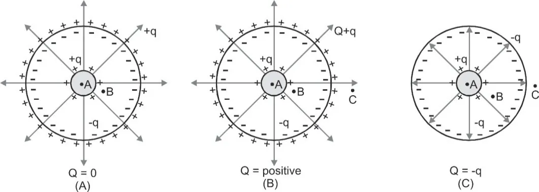 (i) If the outer sphere is given a charge Q, the charge Q will also produce electric field so that now: