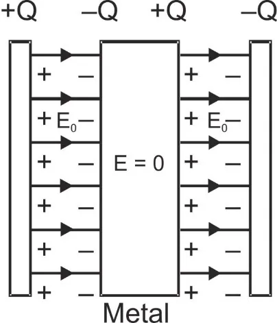 - Lines of force do not exist inside a conductor (as field inside a conductor is zero) The field between the plates is shown as