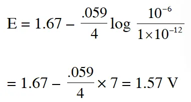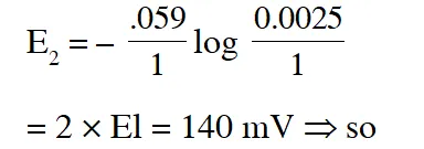 $\mathrm{E}_{1}=-\frac{059}{1} \log \frac{05}{1}=(+) \mathrm{ve} \Rightarrow \mathrm{so}$