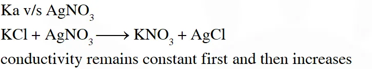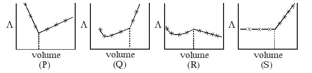 Q. $\mathrm{AgNO}_{3}$ (aq.) was added to an aqueous KCl solution gradually and the conductivity of the solution was measured. the plot of conductance () versus the volume of $\mathrm{AgNO}_{3}$ is -