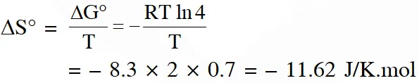 (Given : ln (2) = 0.7, R (universal gas constant) = $8.3 \mathrm{JK}^{-1} \mathrm{mol}^{-1}$. H, S and G are enthalpy, entropy and Gibbs energy, respectively.)