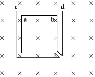 Q. The figure shows certain wire segments joined together to form a coplanar loop. The loop is placed in a perpendicular magnetic field in the direction going into the plane of the figure. The magnitude of the field increases with time. $\mathrm{I}_{1}$ and $\mathrm{I}_{2}$ are the currents in the segments ab and cd. Then,