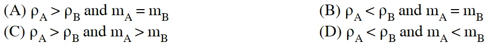 Q. Two metallic rings A and B, identical in shape and size but having different resistivities $P_{\mathrm{A}}$ and $\rho_{\mathrm{B}}$, are kept on top of two identical solenoids as shown in the figure. When current I is switched on in both the solenoids in identical manner, the rings A and B jump to heights $\mathrm{h}_{\mathrm{A}}$ and $\mathrm{h}_{\mathrm{B}}$ respectively, with $\mathrm{h}_{\mathrm{A}}>\mathrm{h}_{\mathrm{B}}$. The possible relation(s) between their resistivities and their masses $\mathrm{m}_{\mathrm{A}}$ and $\mathrm{m}_{\mathrm{B}}$ is(are)