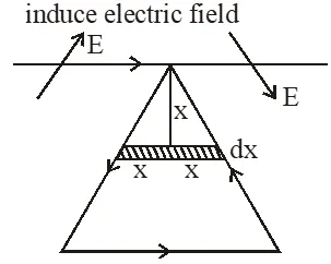 Flux through triangle if wire have current $i=\int_{0}^{0.1}\left(\frac{\mu_{0} i}{2 \pi \mathrm{x}}\right)(2 \mathrm{xd} \mathrm{x})=\frac{\mu_{0} \mathrm{i}}{10 \pi}$