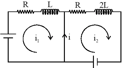$\Delta \mathrm{i}=\left(\mathrm{i}_{2}-\mathrm{i}_{1}\right)=\frac{\mathrm{V}}{\mathrm{R}}\left[1-\mathrm{e}^{-\left(\frac{\mathrm{R}}{2 \mathrm{L}}\right) \mathrm{t}}\right]-\frac{\mathrm{V}}{\mathrm{R}}\left[1-\mathrm{e}^{\left(-\frac{\mathrm{R}}{\mathrm{L}}\right) \mathrm{t}}\right]$