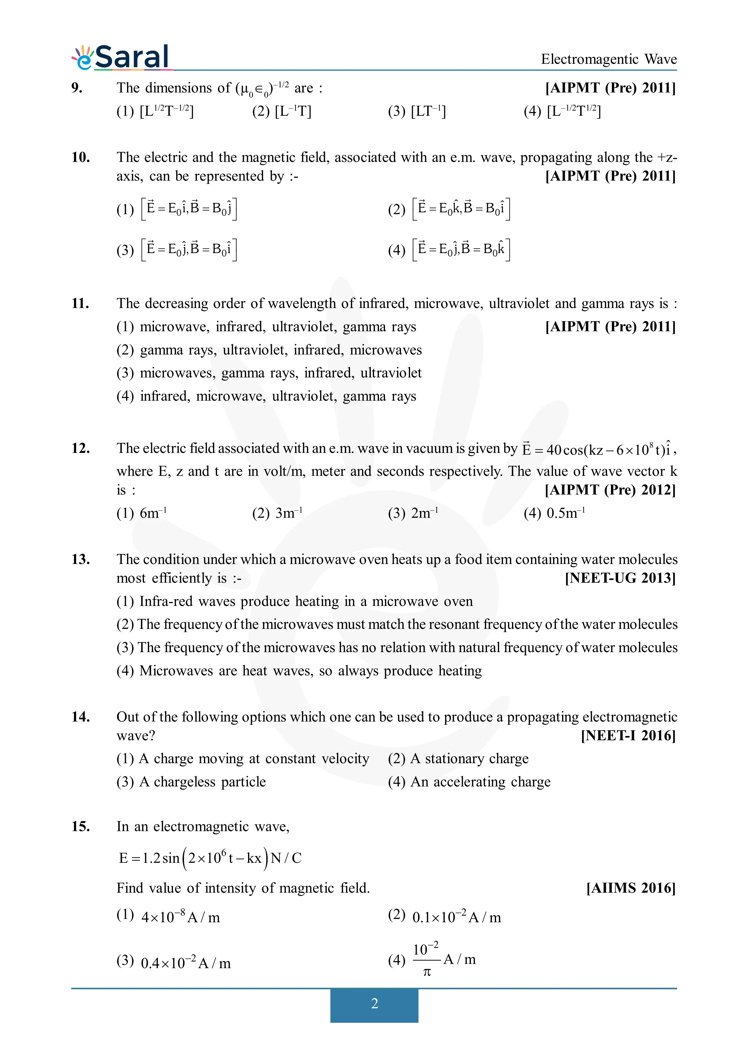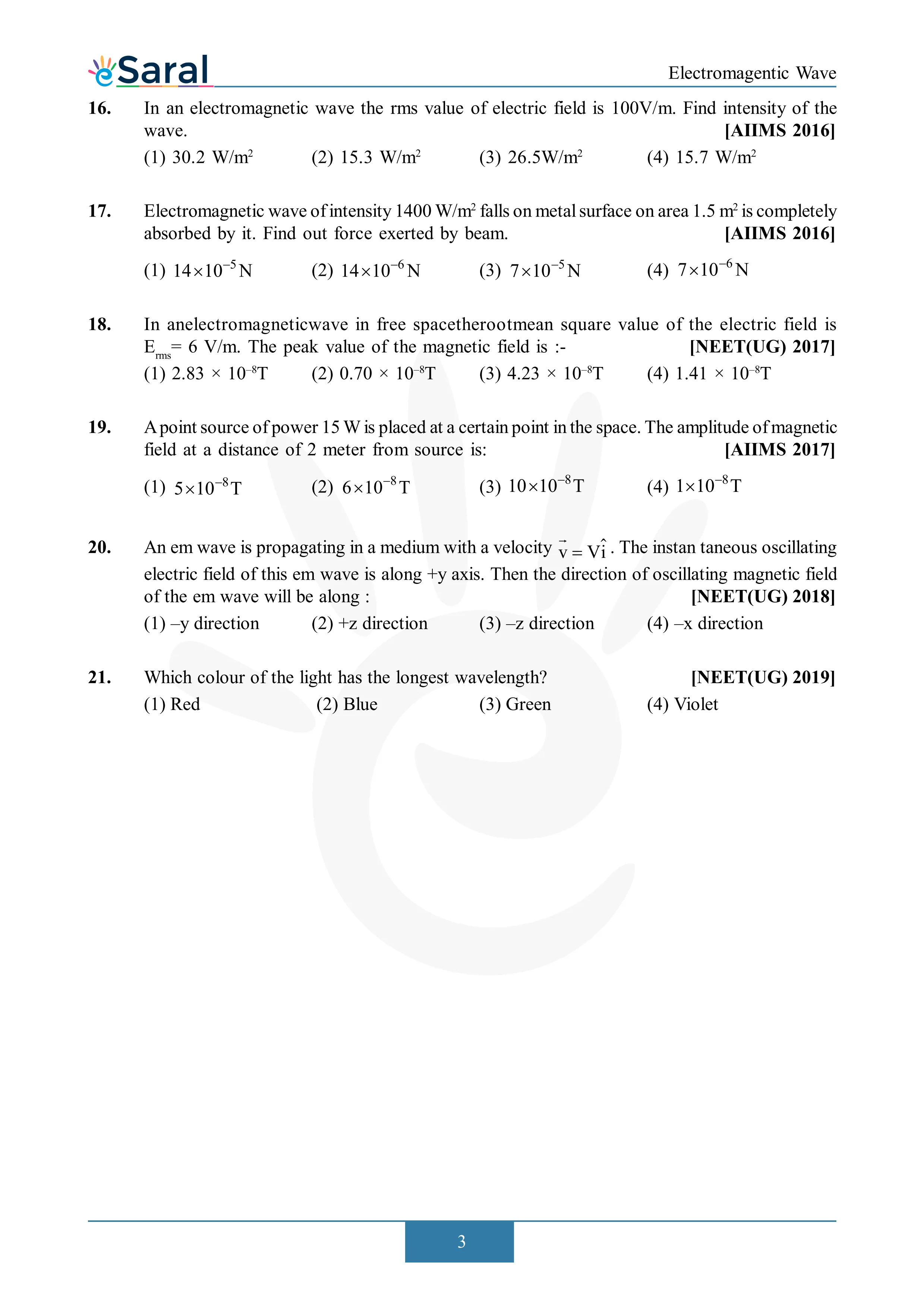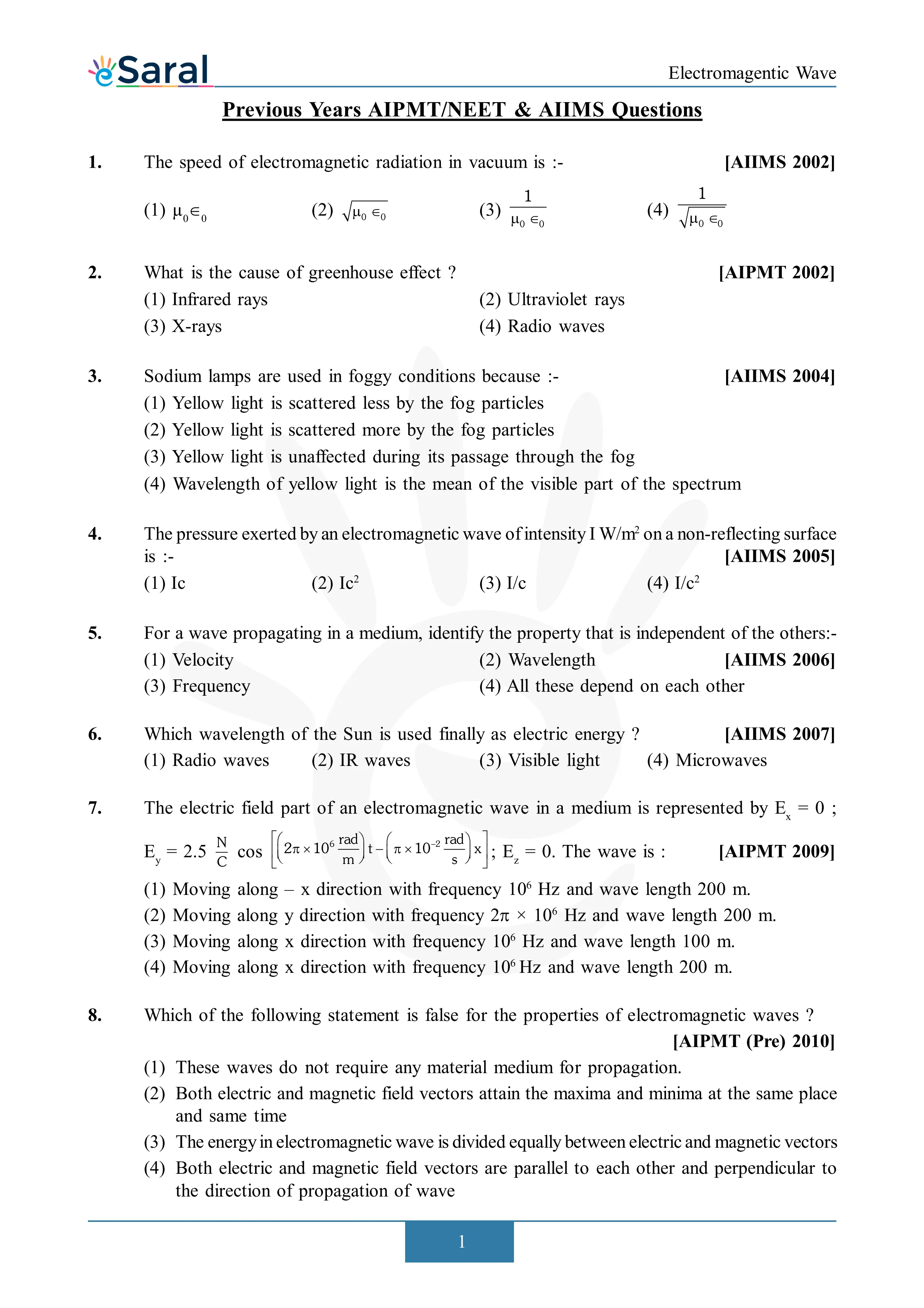Here you will get Complete Electromagnetic Wave NEET Previous Year Questions with complete and detailed solutions.