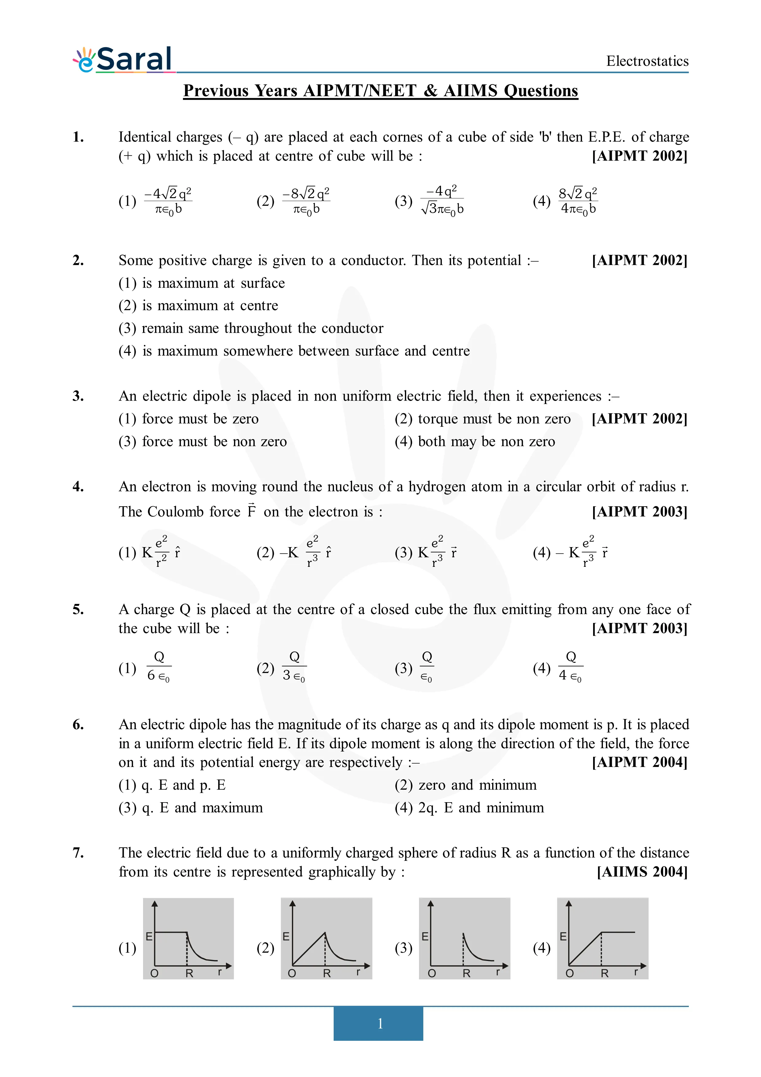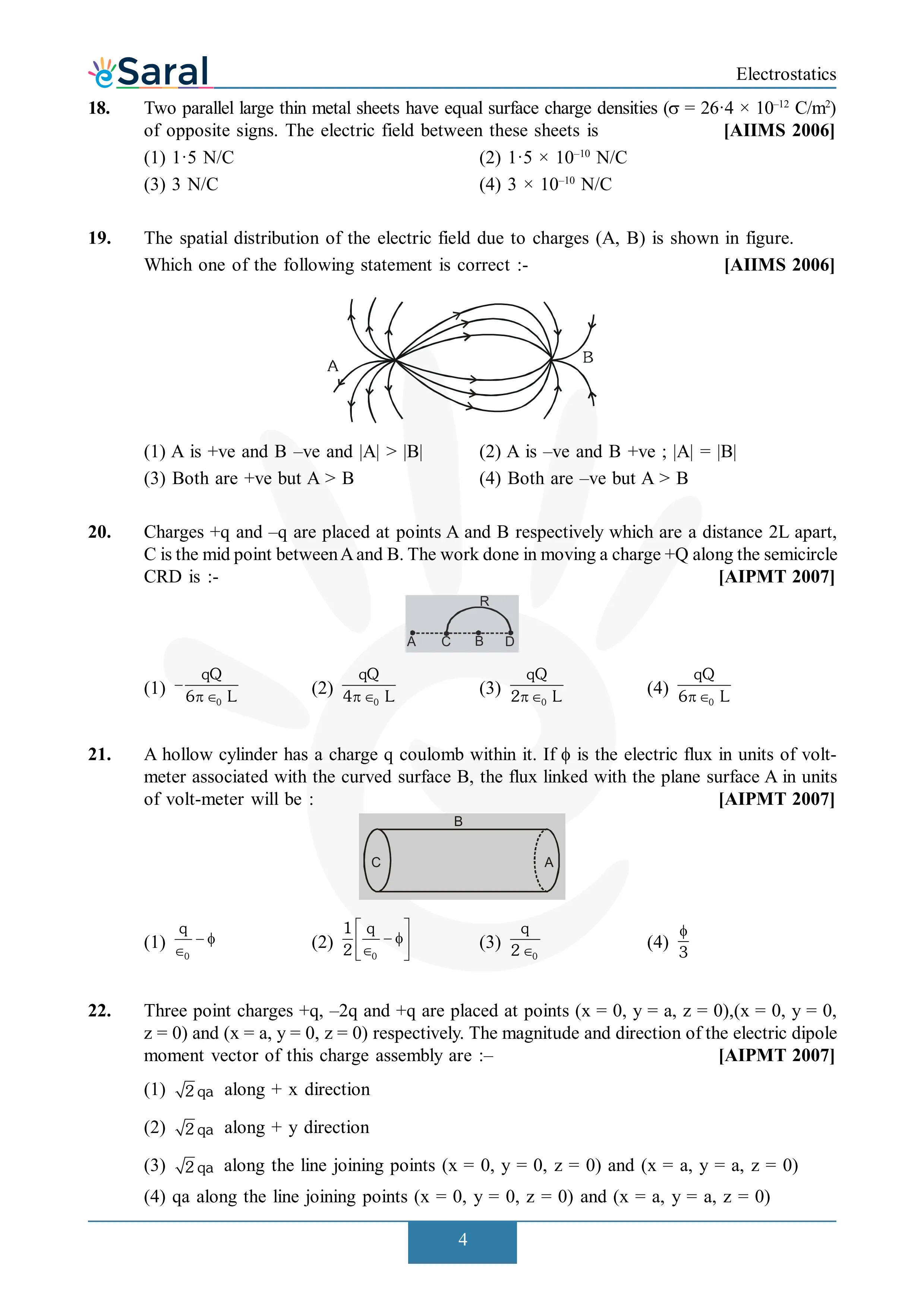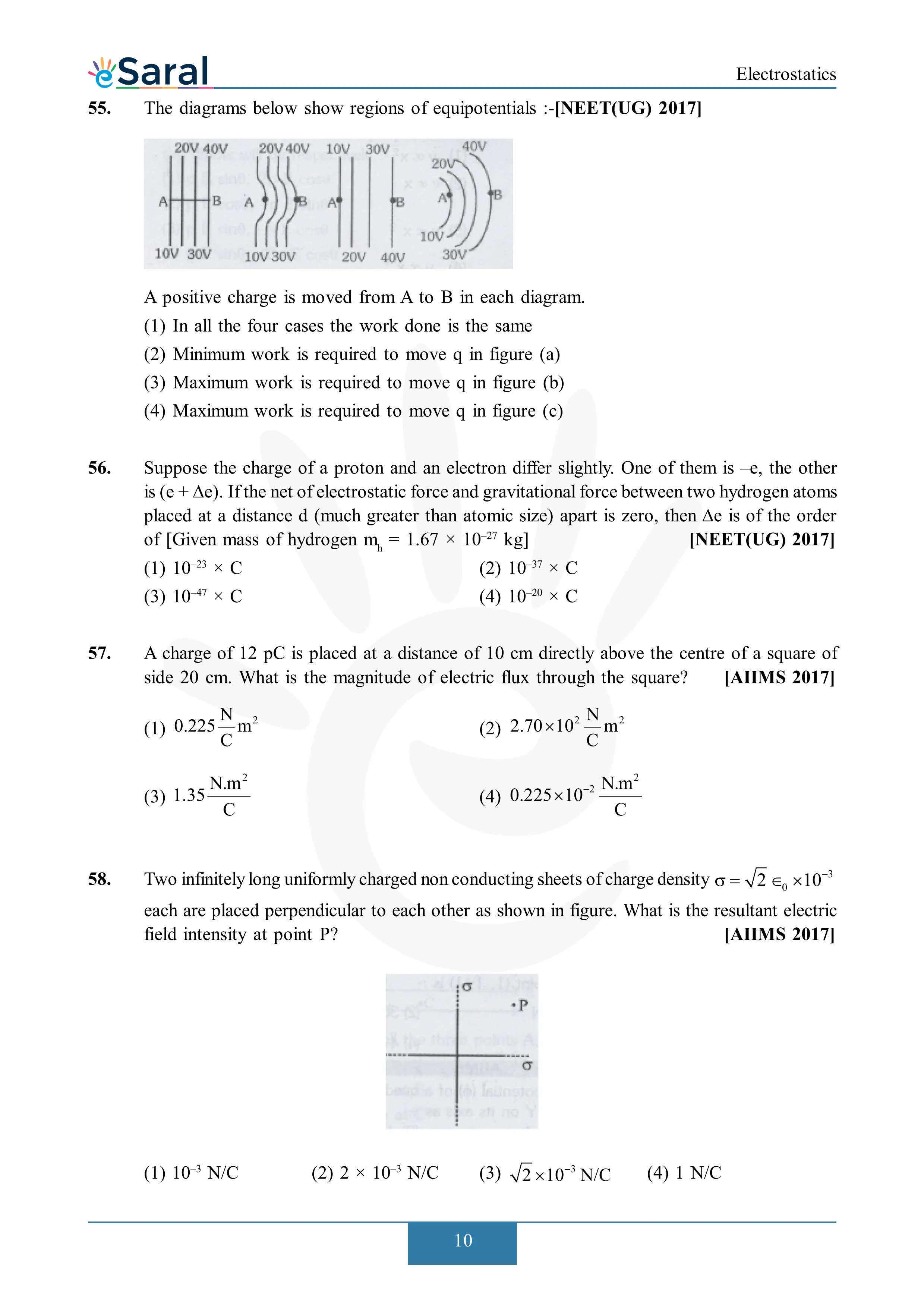 Electrostatics - NEET Previous Year Questions with Complete Solutions