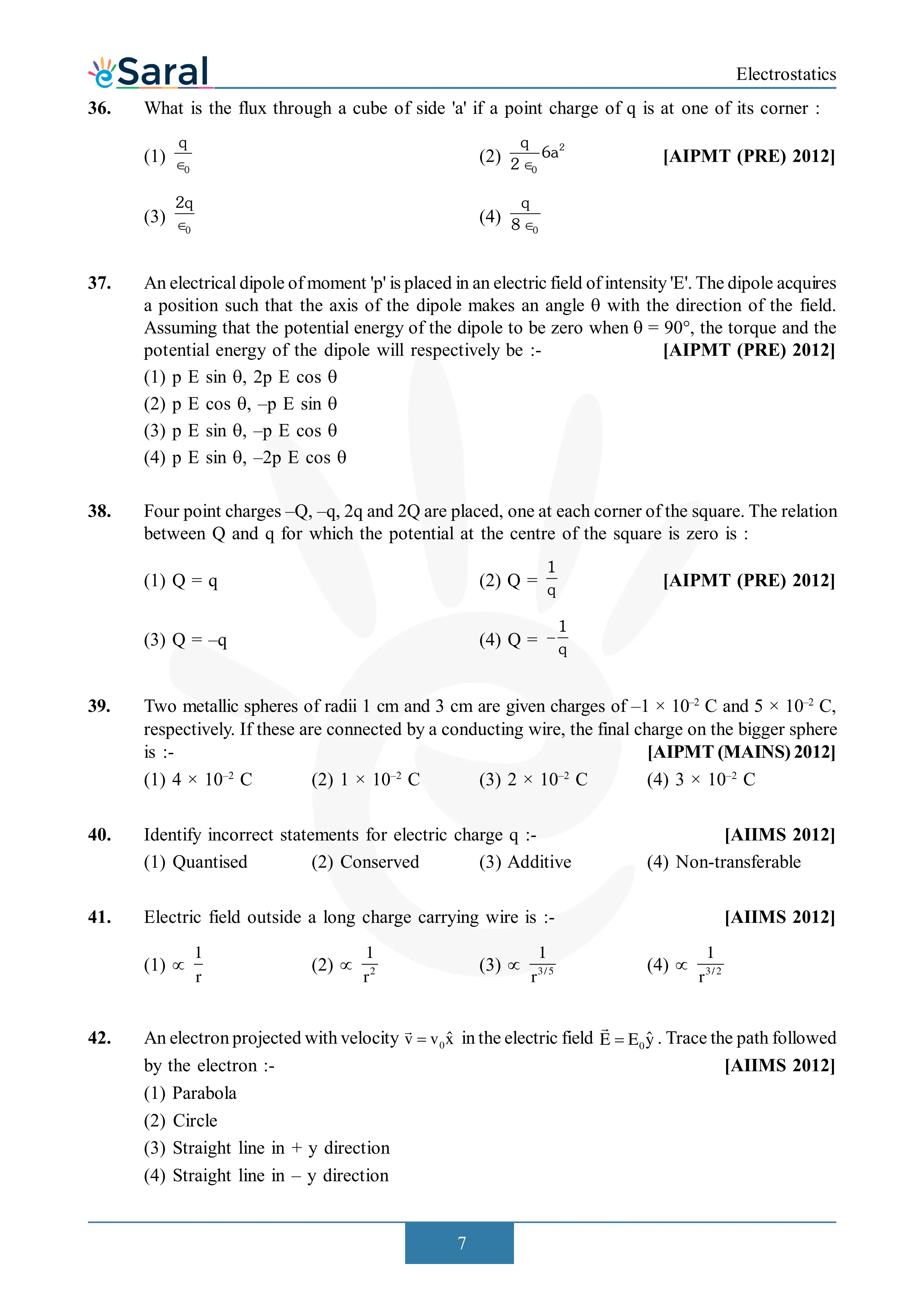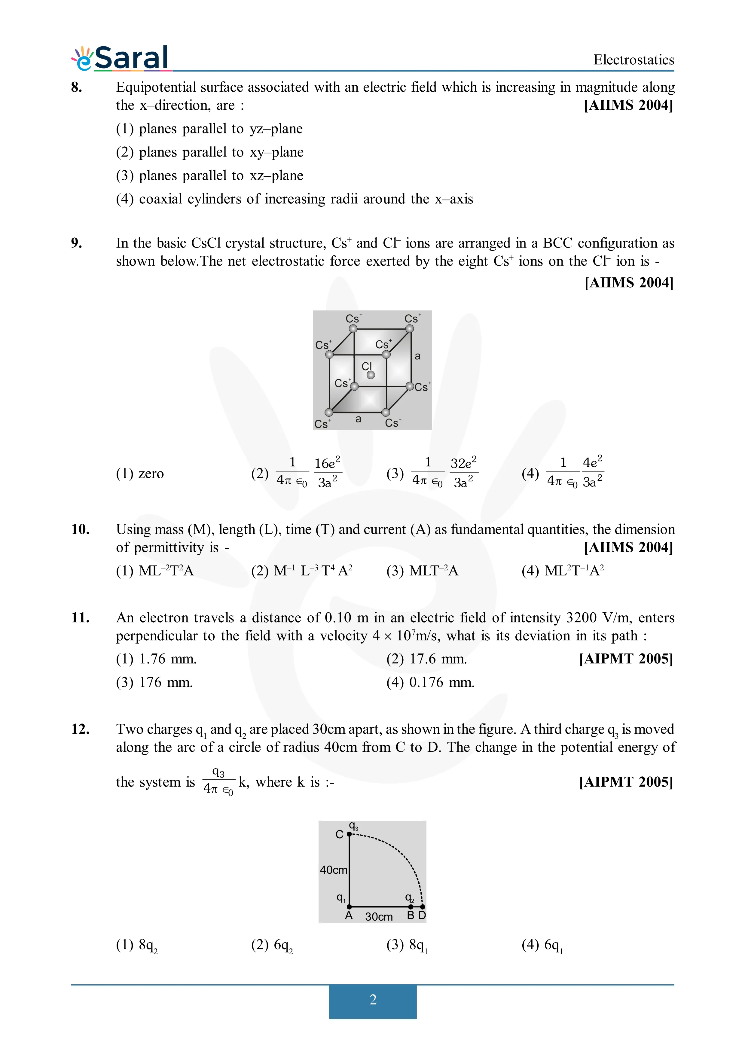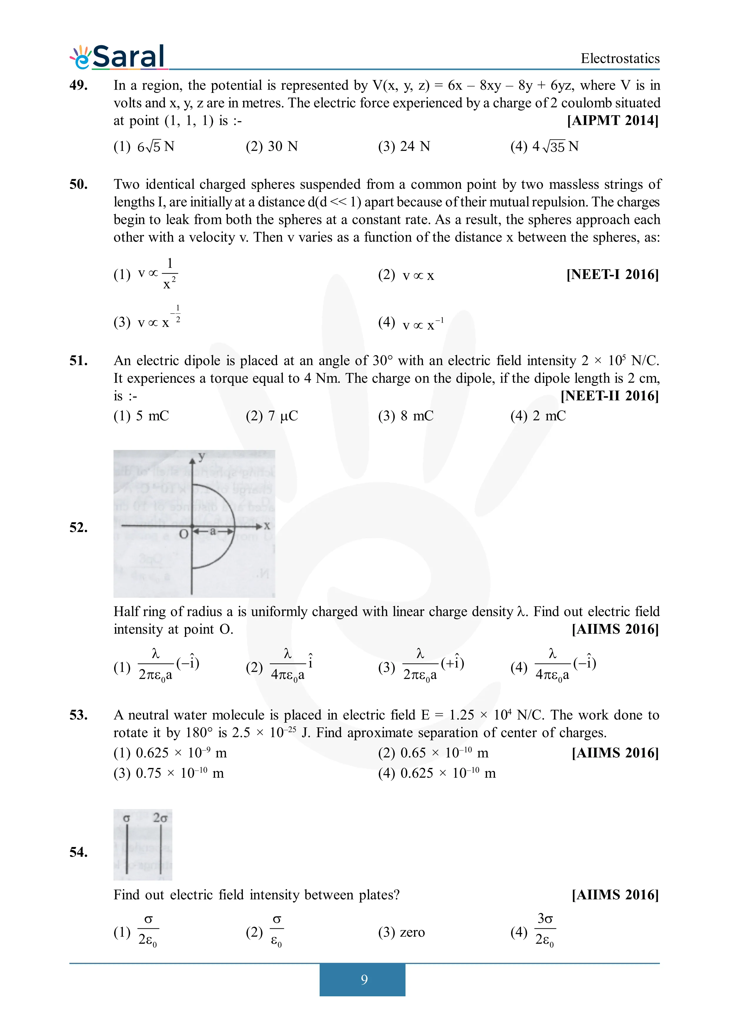 Electrostatics - NEET Previous Year Questions with Complete Solutions