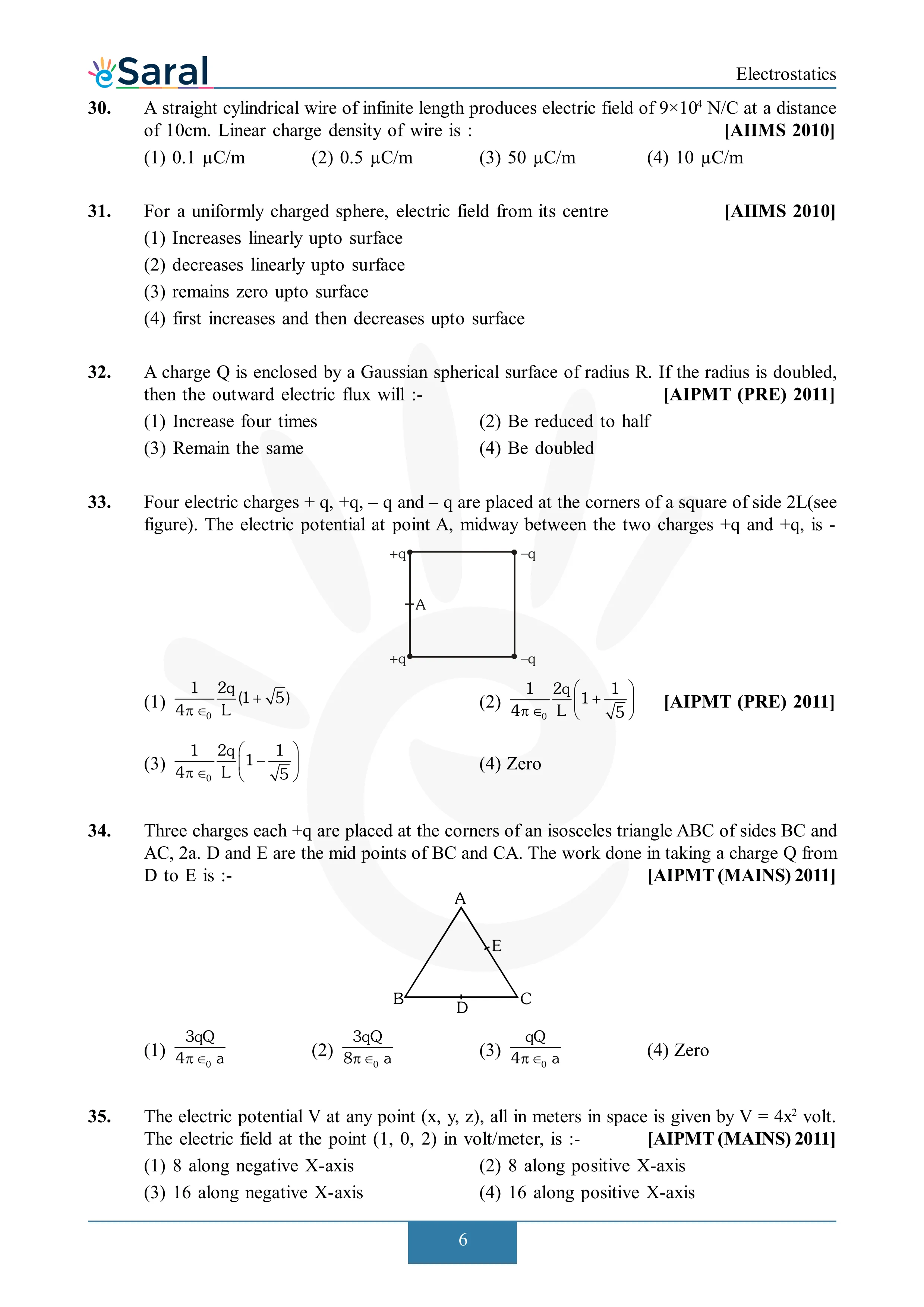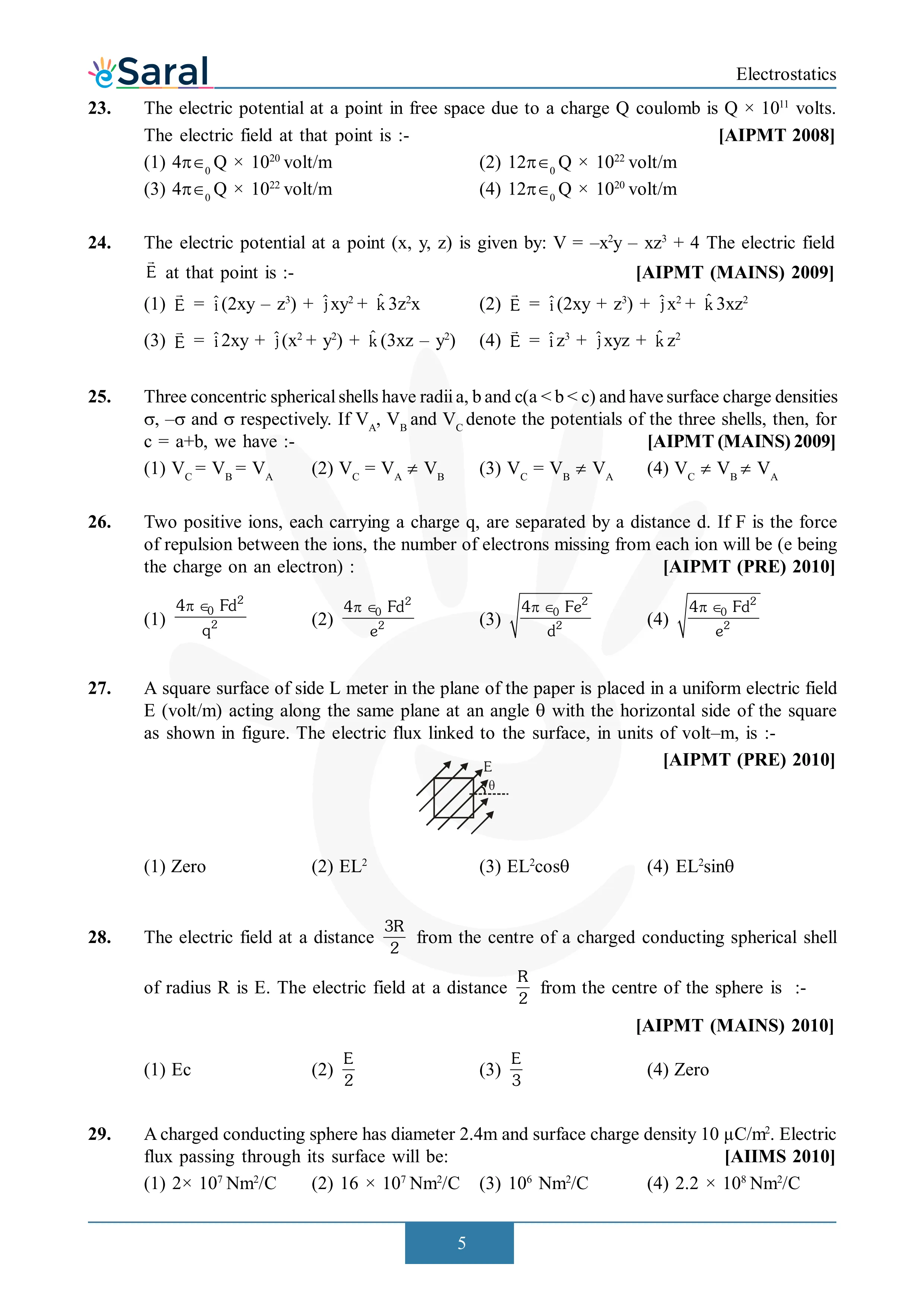 JEE Mains & AdvancedHere you will get Complete Electrostatics NEET Previous Year Questions with complete and detailed solutions.