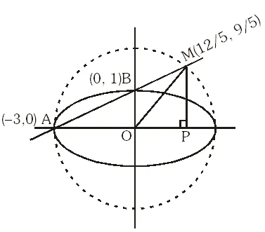 Q. The line passing through the extremity A of the major axis and extremity B of the minor axis of the ellipse $x^{2}+9 y^{2}=9$ meets its auxiliary circle at the point M. Then the area of the triangle with vertices at A, M and the origin O is