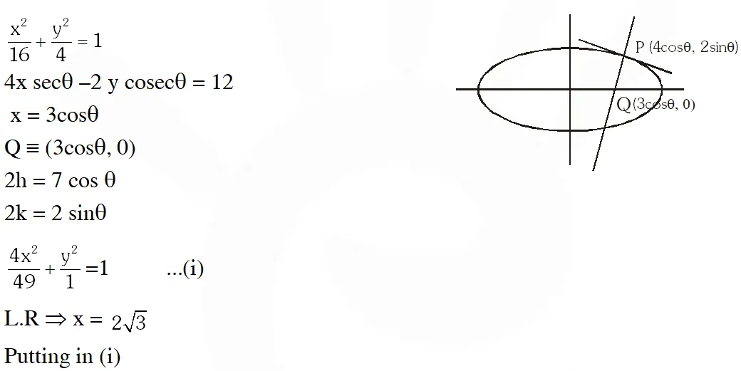 Now, equation tangent at $\mathrm{Q}$ on ellipse $\mathrm{E}_{1}$
