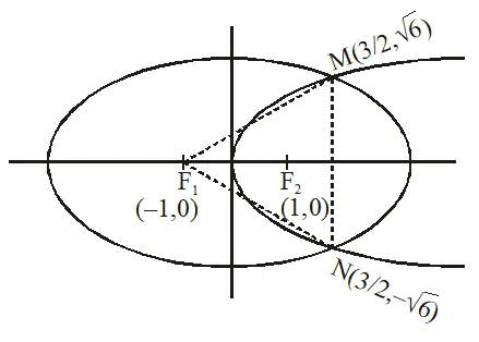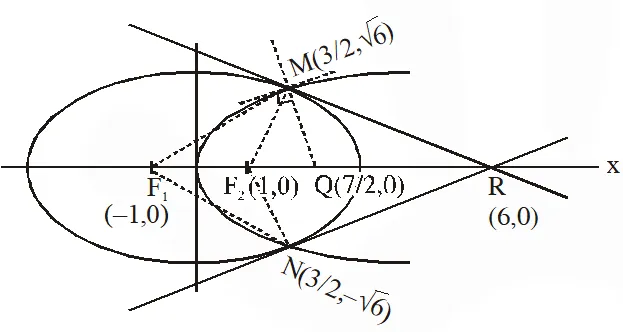 Q. If the tangents to the ellipse at M and N meet at R and the normal to the parabola at M meets the x-axis at Q, then the ratio of area of the triangle MQR to area of the quadrilateral $\mathrm{MF}_{1} \mathrm{NF}_{2}$ is-