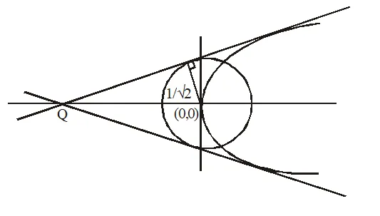 Q. Consider two straight lines, each of which is tangent to both the circle $x^{2}+y^{2}=\frac{1}{2}$ and the parabola $\mathrm{y}^{2}=4 \mathrm{x}$. Let these lines intersect at the point Q. Consider the ellipse whose center is at the origin O(0, 0) and whose semi-major axis is OQ. If the length of the minor axis of this ellipse is $\sqrt{2}$, then the which of the following statement(s) is (are) TRUE ?