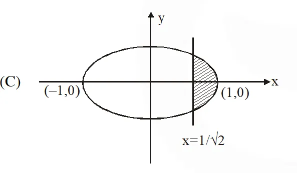 (C) The area of the region bounded by the ellipse between the lines $\mathrm{x}=\frac{1}{\sqrt{2}}$ and $\mathrm{x}=1$ is $\frac{1}{4 \sqrt{2}}(\pi-2)$