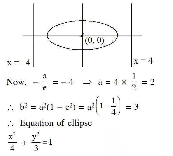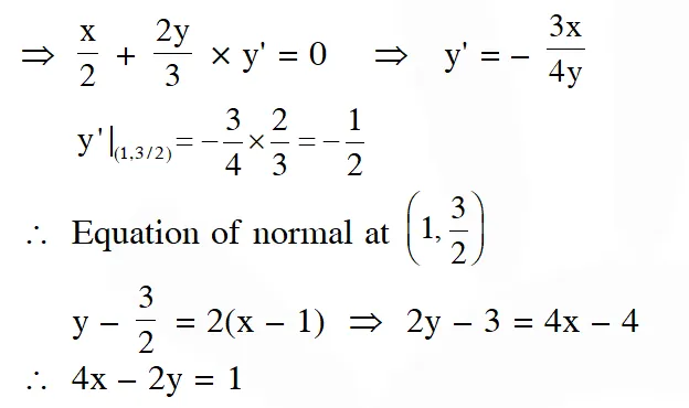 Q. The eccentricity of an ellipse centre is at the origin is $\frac{1}{2} .$ If one of its directices is $\mathrm{x}=-4,$ then the equation of the normal to it at $\left(1, \frac{3}{2}\right)$ is : -
