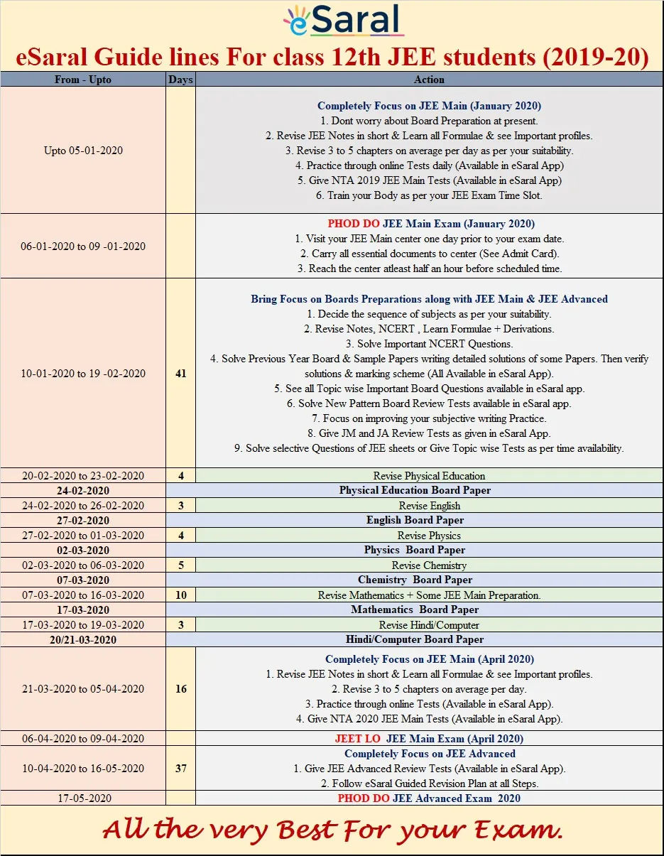 eSaral Guide lines For class 12th JEE students (2019-20)