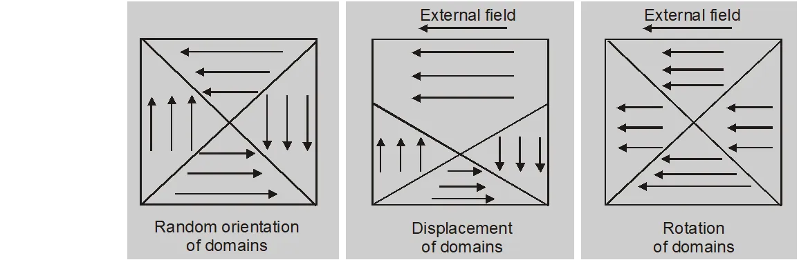 (b) Rotation of domains. Here domains rotate until their magnetic dipole moments are aligned parallel to direction of external field.