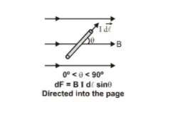 $\overrightarrow{\mathrm{dF}}=\mathrm{I} \overrightarrow{\mathrm{d}} \ell \times \overrightarrow{\mathrm{B}}$