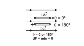 Then force on a current element $=0$ (minimum)