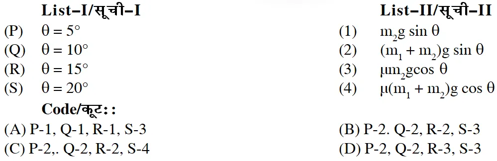 For $\mathrm{R}$ and $\mathrm{S}$ system will move hence limiting friction acts friction $=\mu \mathrm{m}_{2} \mathrm{g} \cos \theta$