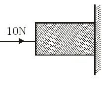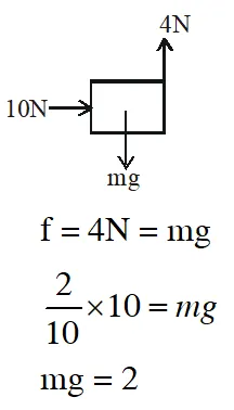 Q. A horizontal force of 10 N is necessary to just hold a block stationary against a wall. The coefficient of friction between the block and the wall is 0.2. The weight of the block is-