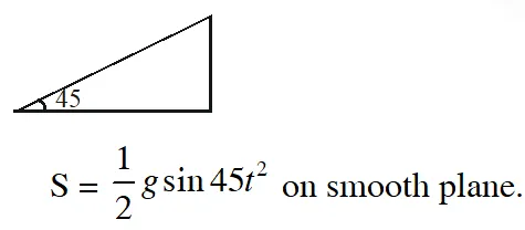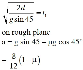 Q. A smooth block is released at rest on a $45^{\circ}$ incline and then slides a distance d. The time taken to slide is n times as much to slide on rough incline than on a smooth incline. The coefficient of friction is-