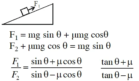 $\operatorname{mg} \sin \theta=\mu \operatorname{mg} \cos \theta$