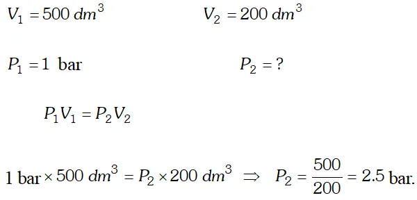 Ans. Since temperature and amount of gas remains constant, therefore, Boyle’s law is applicable.