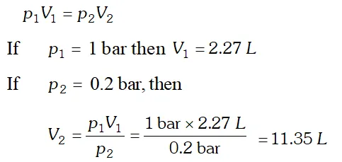 Q. A balloon is filled with hydrogen at room temperature. It will burst if pressure exceeds 0.2 bar. If at 1 bar pressure the gas occupies 2.27 L volume, upto what volume can the balloon be expanded ?