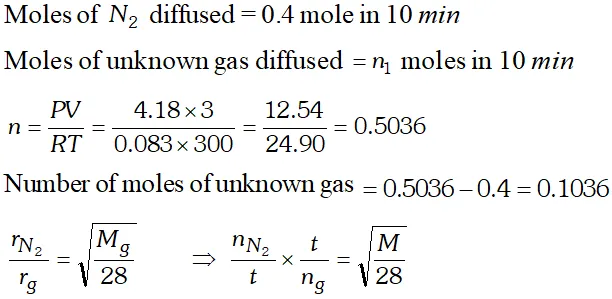 $=0.0293 \mathrm{kg} \mathrm{mol}^{-1}$ or molar mass is $29.3 \mathrm{g} \mathrm{mol}^{-1}$