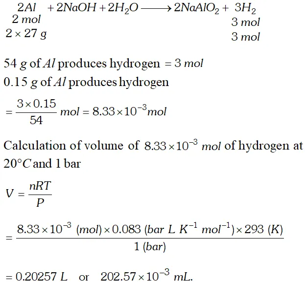 or $\quad v_{H_{2}}=1.584 L=0.14 g$ of $H_{2}$
