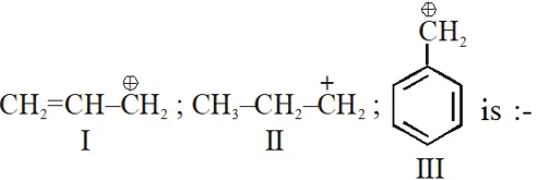 (1) III > II > I (2) II > III > I (3) I > II > III (4) III > I > II [JEE-MAIN-2013]