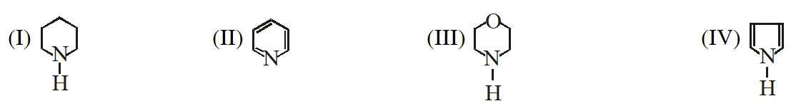 the order of basicity is as follows : (1) IV > III > II > I (2) II > III > I > IV (3) I > III > II > IV (4) III > I > II > IV [JEE(Main)-2012]