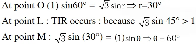 Hence if the combination can be placed both ways i.e. 1st structure & then 2nd structure and then reversed also, then the condition of TIR is satisfied for lower $\dot{\mathbf{1}}_{\mathrm{m}}$ then it can be satisfied for all other less angler as well.