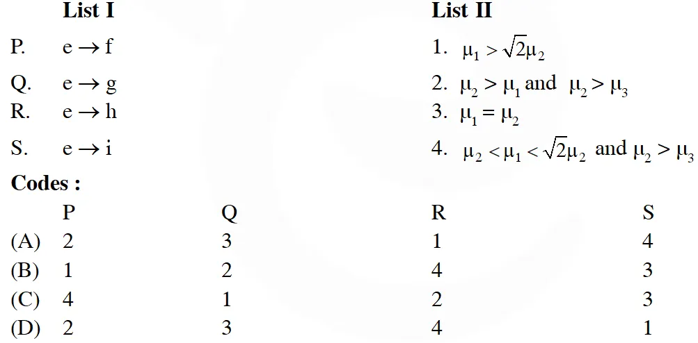 Match the paths in List I with conditions of refractive indices in List II and select the correct answer using the codes given below the lists :