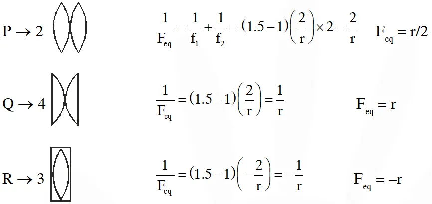 $\frac{1}{\mathrm{f}}=\left(\frac{\mu_{1}-1}{\mathrm{R}_{1}}\right)+\left(\frac{\mu_{2}-1}{\mathrm{R}_{2}}\right) \Rightarrow \frac{1}{\mathrm{f}}=\frac{5}{14}+\frac{2}{14}$