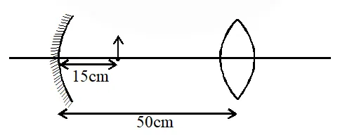 Q. A biconvex lens of focal length 15 cm is in front of a plane mirror. The distance between the lens and the mirror is 10 cm. A small object is kept at a distance of 30 cm from the lens. The final image is –