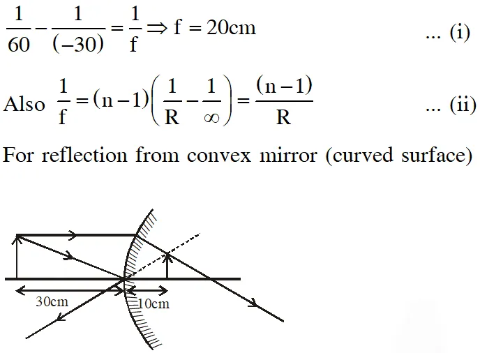 $\mathrm{V}=\frac{\mathrm{uf}}{\mathrm{u}-\mathrm{f}} \quad$ by sustituting the value of u and $\mathrm{f}$