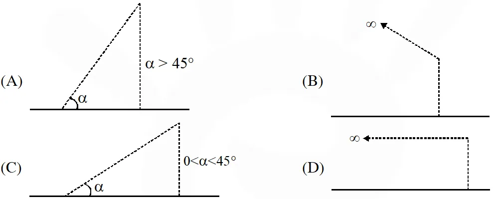Q. A wire is bent in the shape of a right angled triangle and is placed in front of a concave mirror of focal length f, as shown in the figure. Which of the figures shown in the four options qualitatively represent(s) the shape of the image of the bent wire ? (These figures are not to scale.) ?