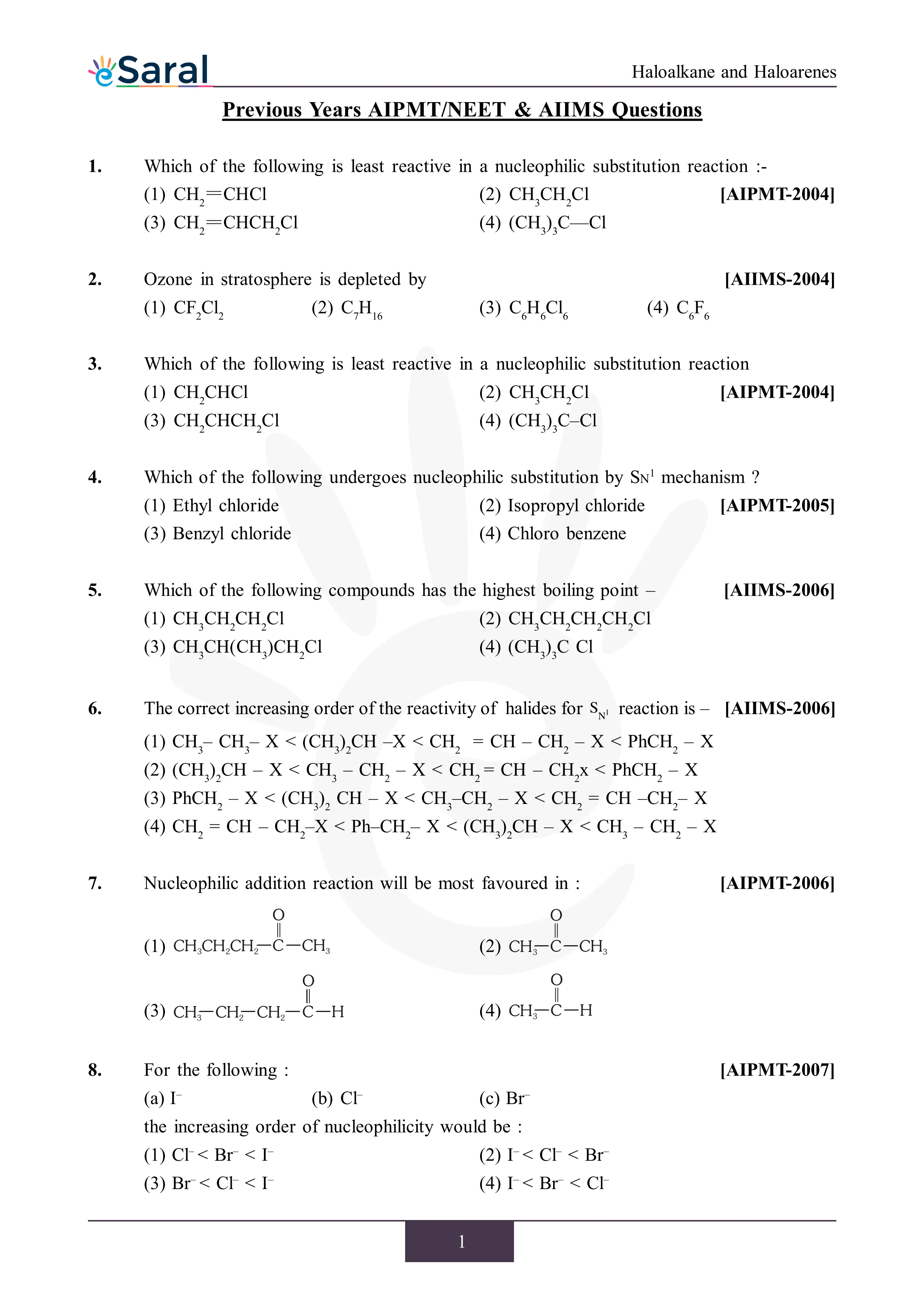 Haloalkane and Haloarenes - NEET Previous Year Questions with Complete Solutions