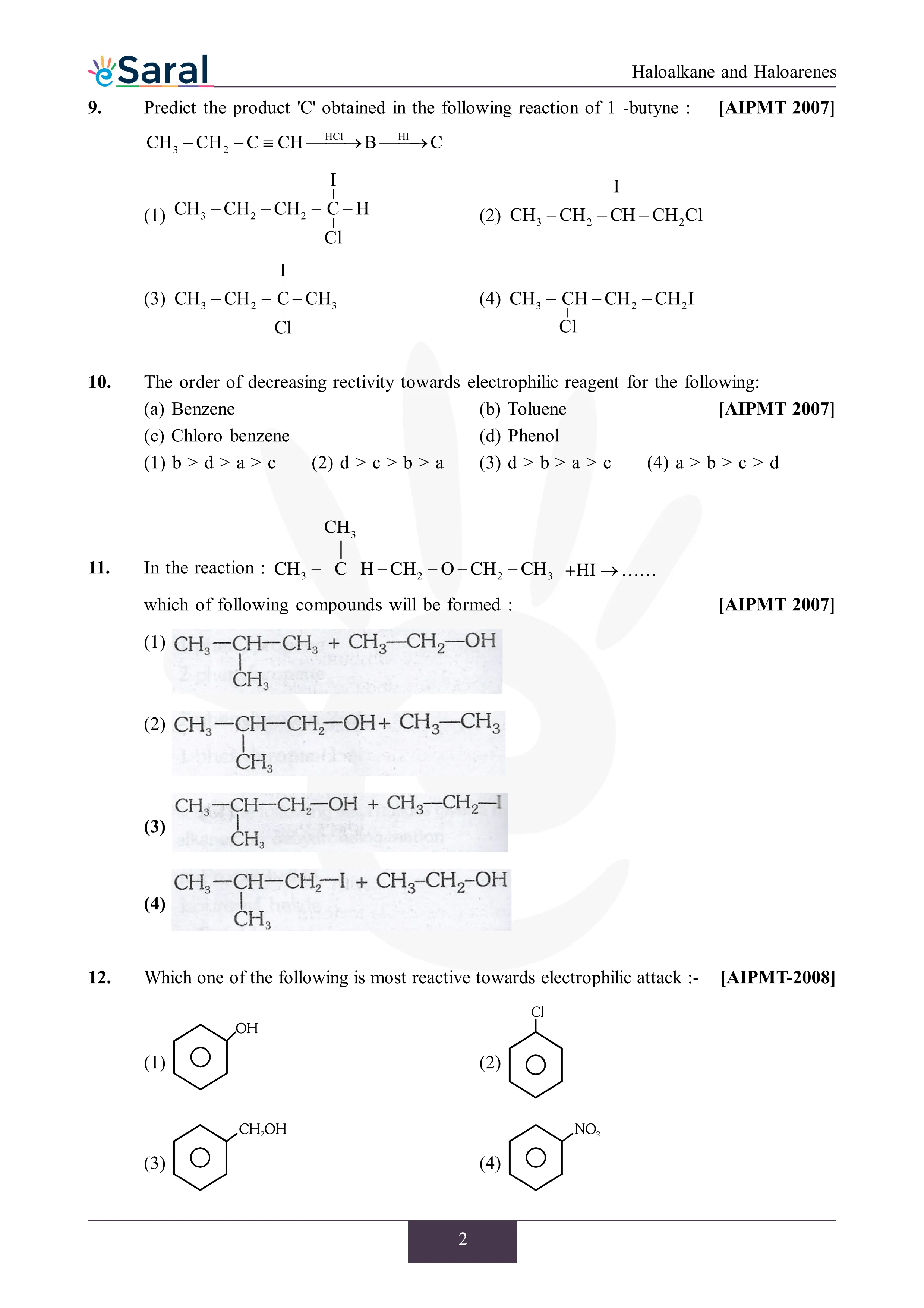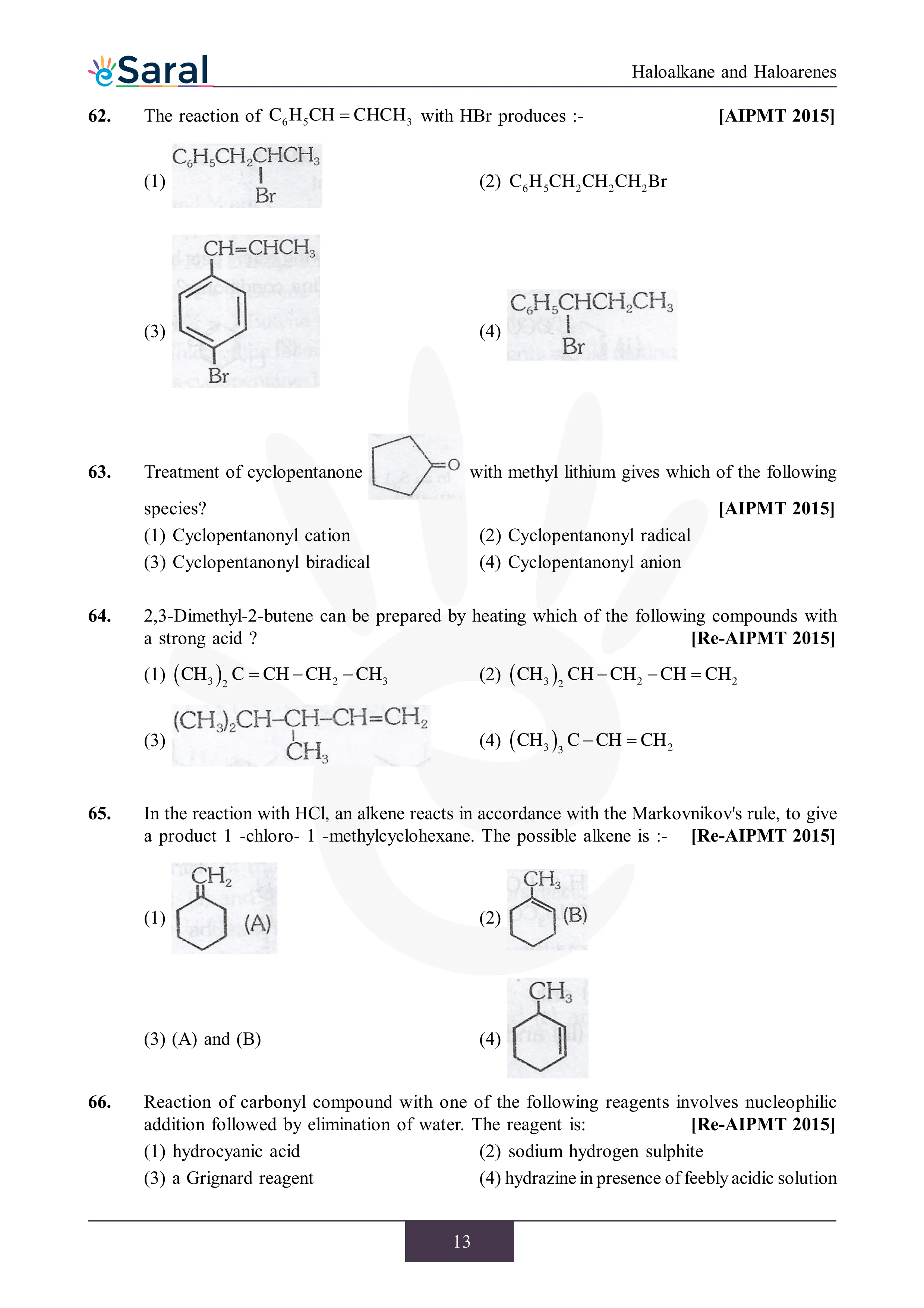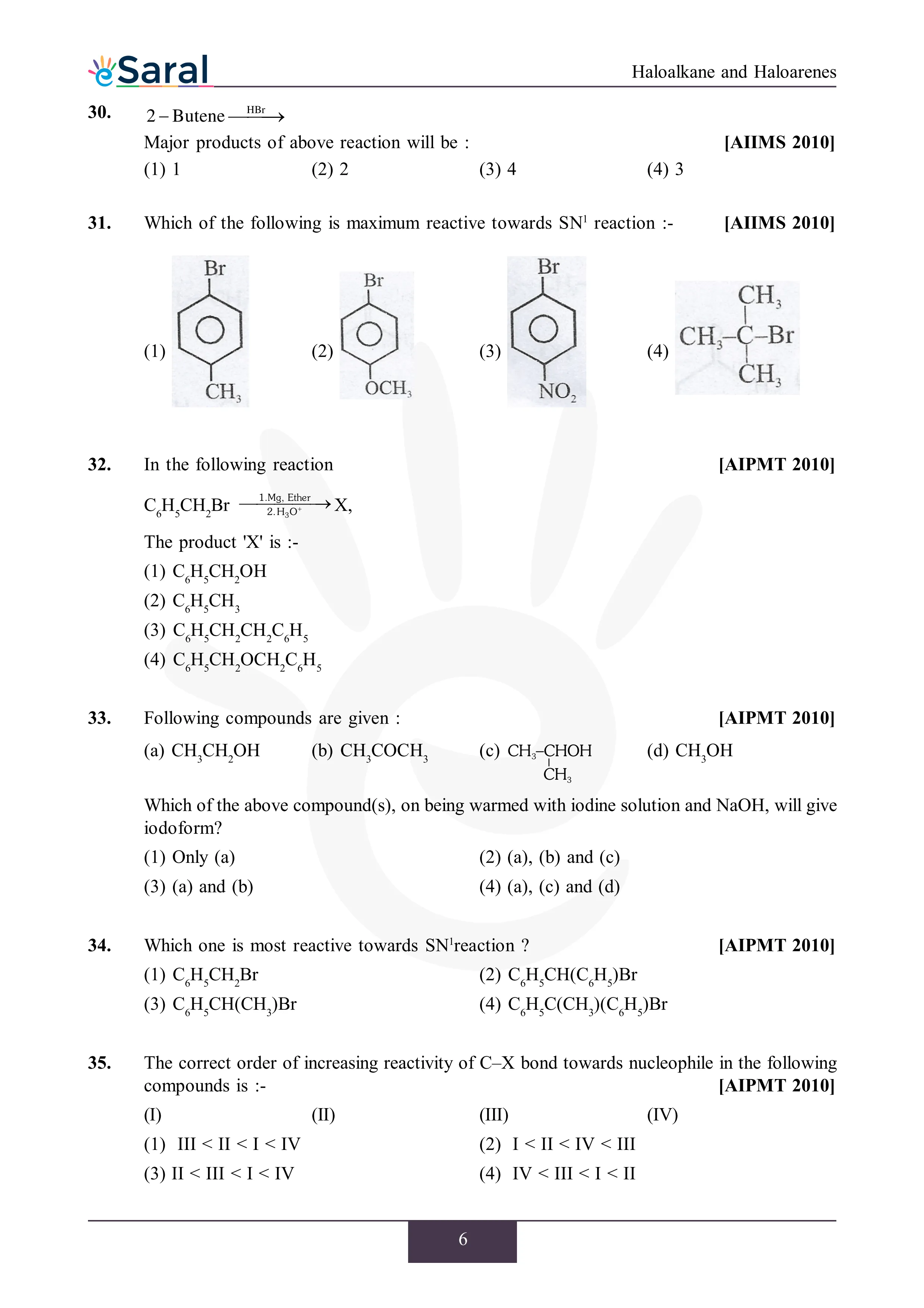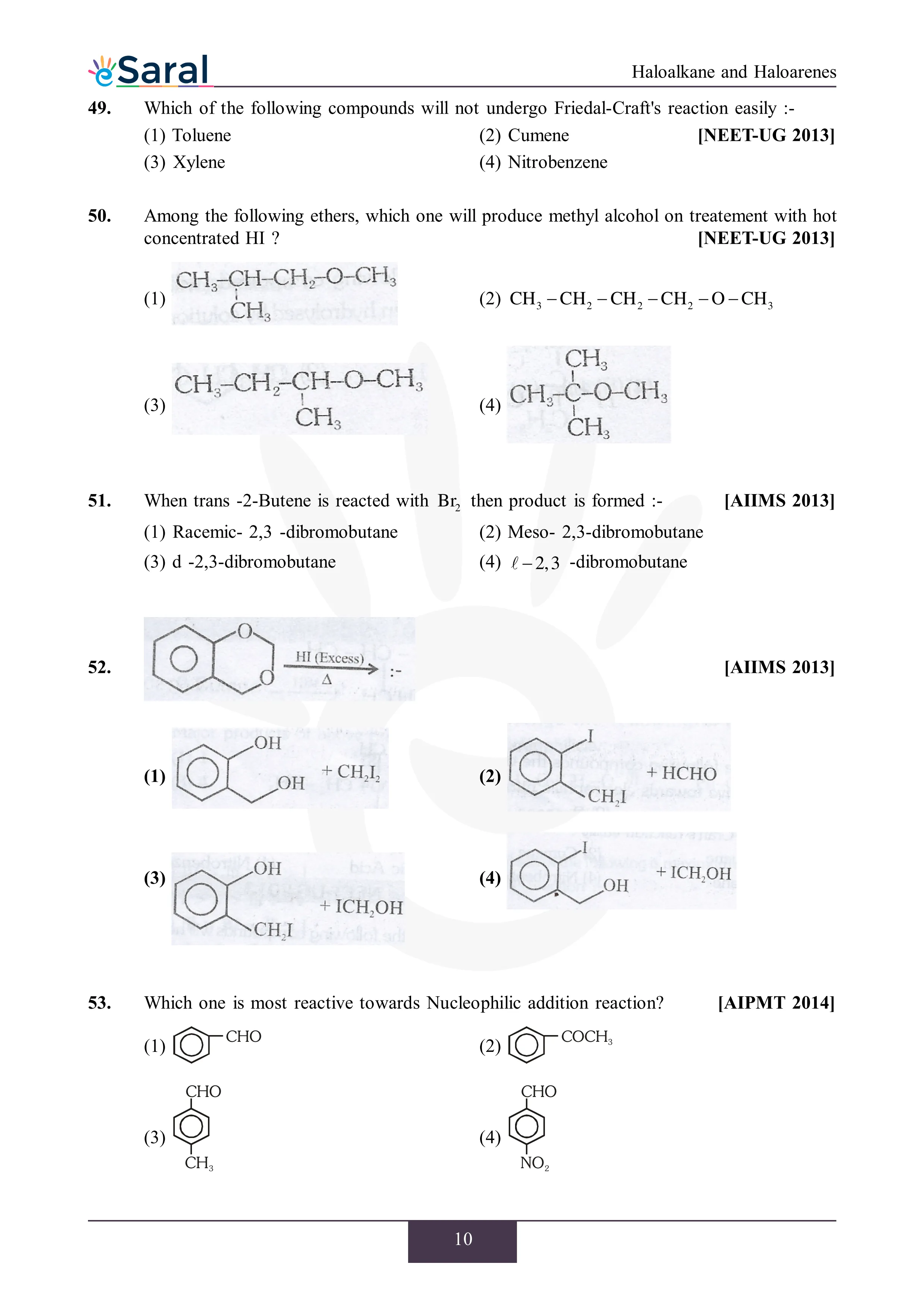JEE Mains & AdvancedHere you will get Complete Haloalkane and Haloarenes NEET Previous Year Questions with complete and detailed solutions.