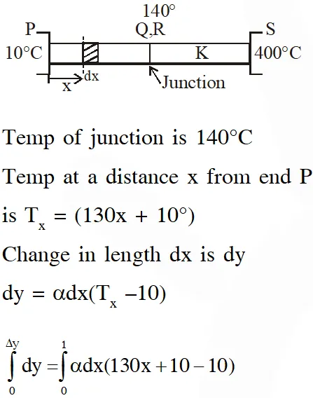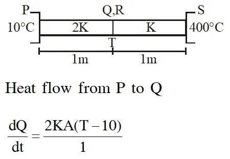Q. The ends Q and R of two thin wires, PQ and RS, are soldered (joined) together. Initially each of the wires has a length of 1m at $10^{\circ} \mathrm{C}$. Now the end P is maintained at $10^{\circ}$C, while the end S is heated and maintained at $400^{\circ} \mathrm{C}$. The system is thermally insulated from its surroundings. If the thermal conductivity of wire PQ is twice that of the wire RS and the coefficient of linear thermal expansion of PQ is $1.2 \times 10^{-5} \mathrm{K}^{-1}$, the change in length of the wire PQ is : -