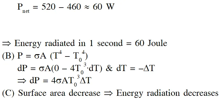 (A) The amount of energy radiated by the body in 1 second is close to 60 Joules