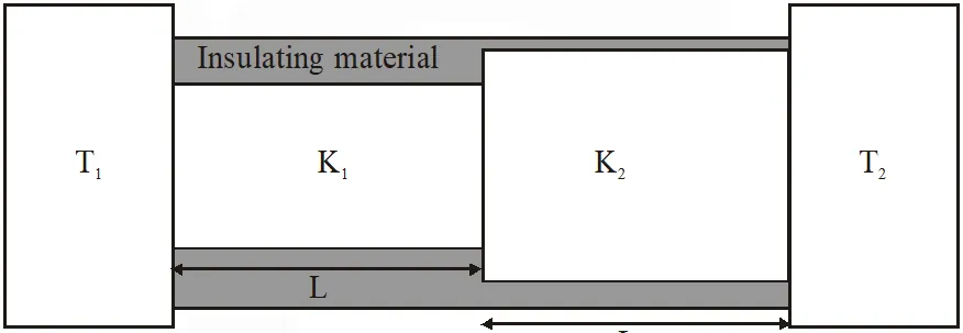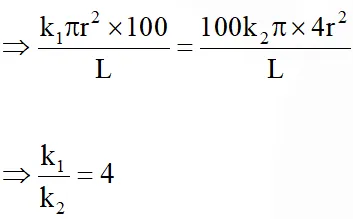 Q. Two conducting cylinders of equal length but different radii are connected in series between two heat baths kept at temperatures $\mathrm{T}_{1}=300 \mathrm{K}$ and $\mathrm{T}_{2}=100 \mathrm{K}$K, as shown in the figure. The radius of the bigger cylinder is twice that of the smaller one and the thermal conductivities of the materials of the smaller and the larger cylinders are $\mathrm{K}_{1}$ and $\mathrm{K}_{2}$ respectively. If the temperature at the junction of the two cylinders in the steady state is 200 K, then $\mathrm{K}_{1} / \mathrm{K}_{2}$ = _________.