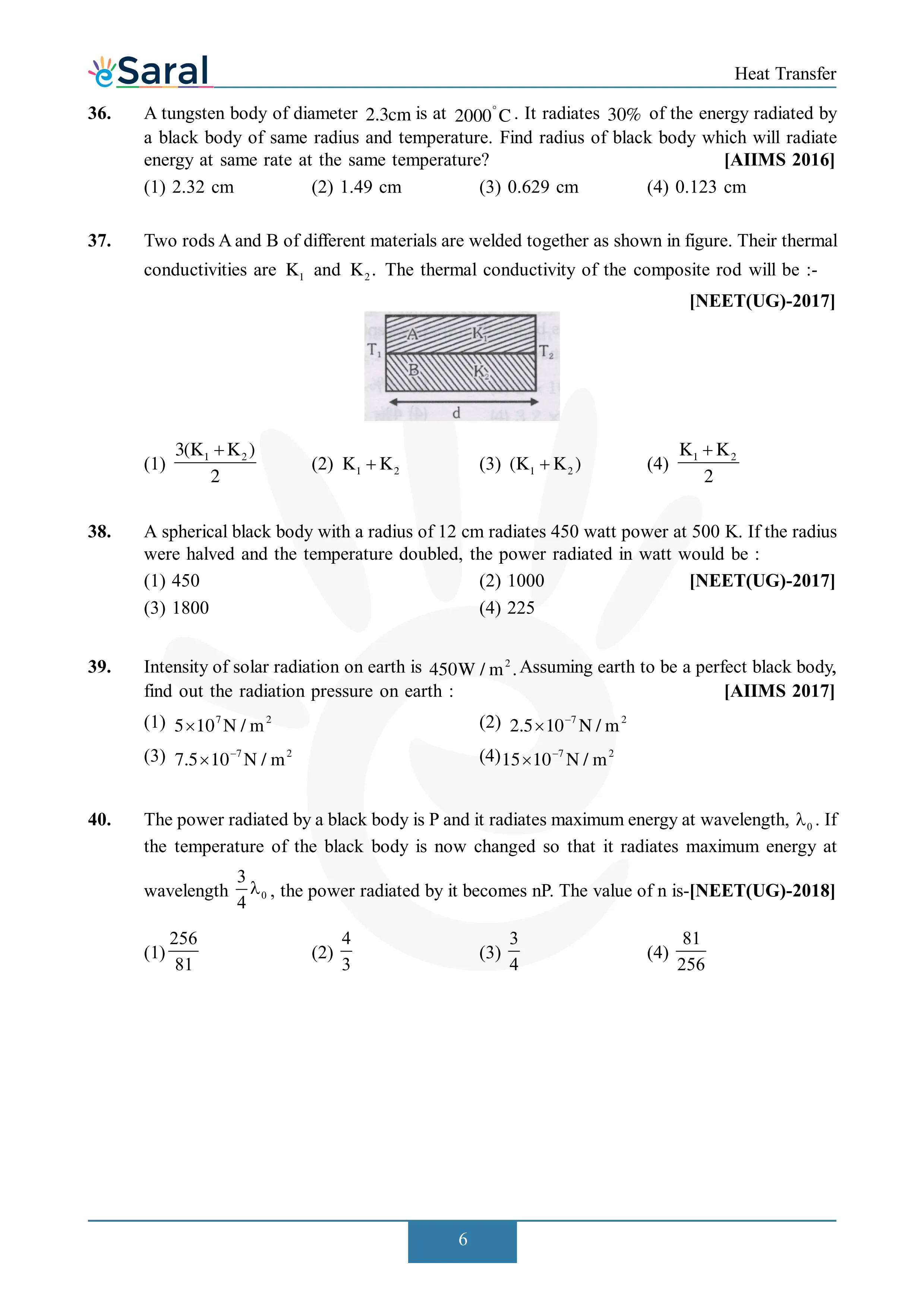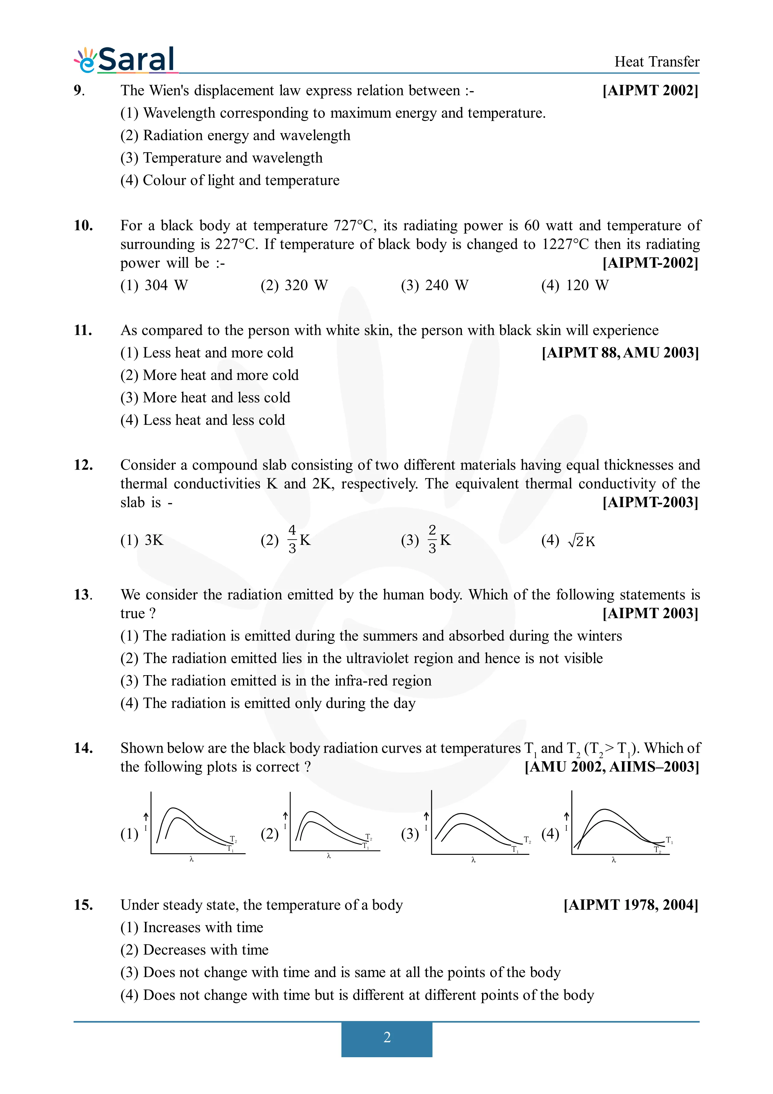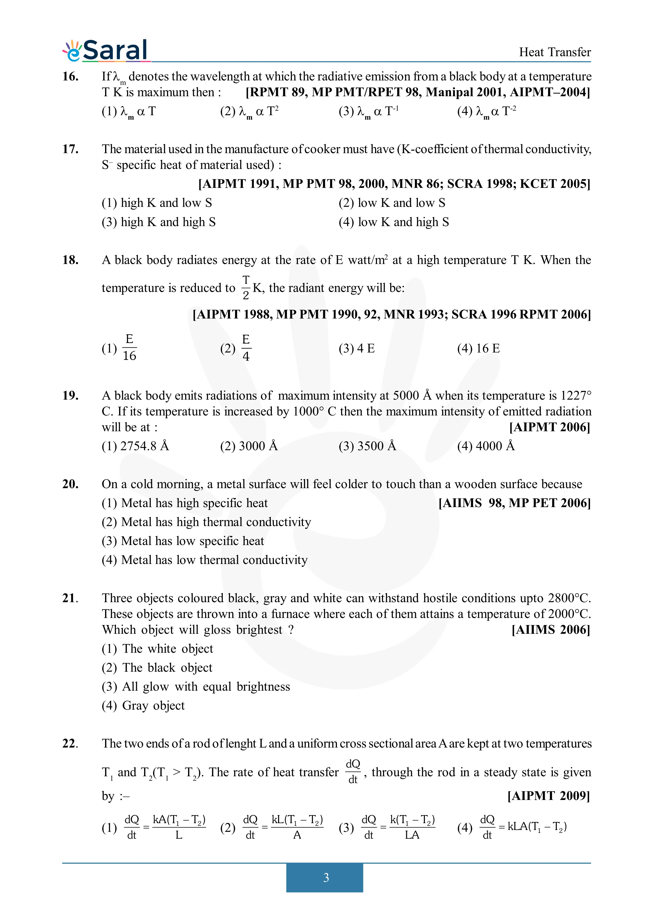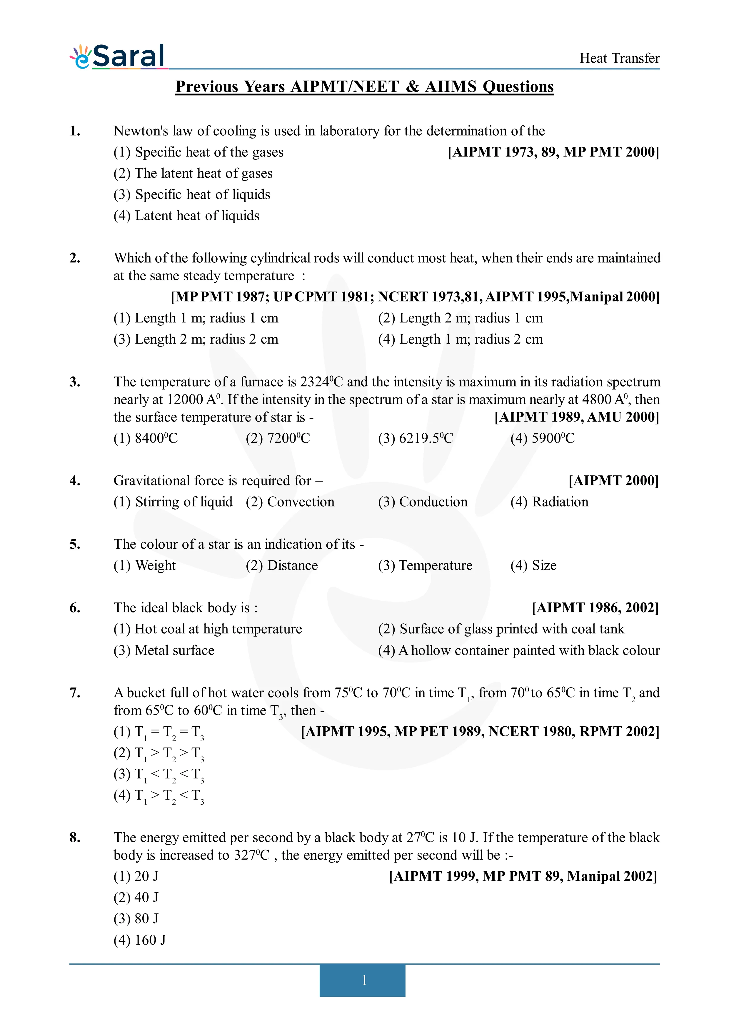 Here you will get Complete Heat Transfer NEET Previous Year Questions with complete and detailed solutions.