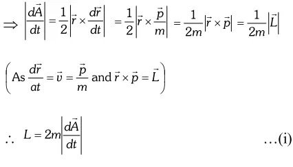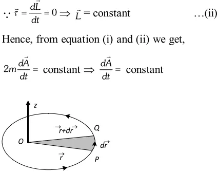 Ans. On the basis of his investigations, Kepler formulated the following three laws of planetary motion: (i) First law (law of orbit): Every planet revolves around the sun in an elliptical orbit, keeping sun at one focus of ellipse. (ii) Second law (Law of area): The radius vector drawn from sun to a planet sweeps out equal areas in equal intervals of time. i.e. areal velocity of the planet around the sun is constant. (iii) Third law (Law of period): The square of time period of revolution of a planet around the sun is directly proportional to the cube of semi major axis of its elliptical orbit i.e. $T^{2} \propto R^{3}$ Deduction of second law: Let a particle rotates in $X-Y$ plane about $z$ -axis. At any time $t, \overrightarrow{O P}=\vec{r},$ be the position vector of particle. The area swept by the position vector in small time $d t,$ $|d \vec{A}|=$ area of $\Delta O P Q=\frac{1}{2}|\vec{r} \times d \vec{r}|$