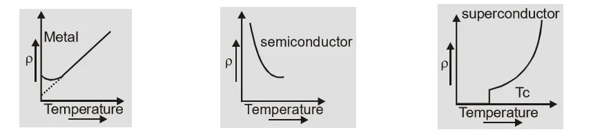 - The temperature dependence of resistivity is given by relation $\rho = {\rho _0}(1 + \infty \Delta \theta )$ where $ \propto $is temperature coefficient of resistivity and $\Delta \theta $ is change is temperature. For metals $ \propto $ is positive so resistivity increases with temperature while for non-metals $\infty $ is negative so resistivity decreases with temperature.